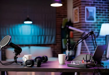 Tailored recording spaces for high-quality podcast production and creative collaboration with experts.